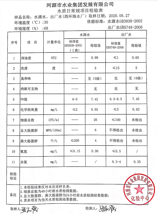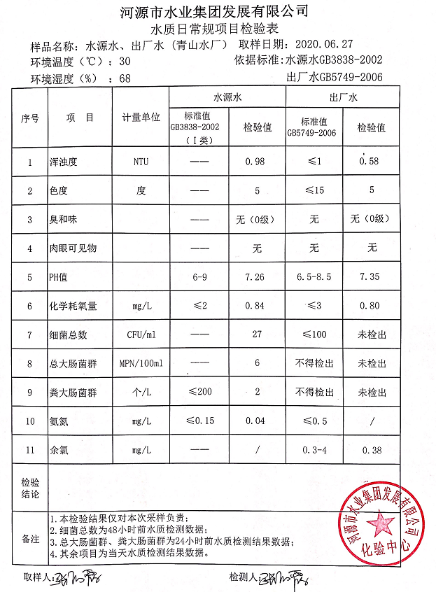 2020年6月27日水質(zhì)檢驗(yàn)報(bào)告