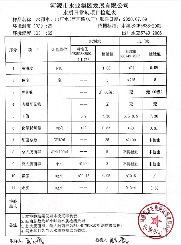 2020年7月9日水質檢驗報告