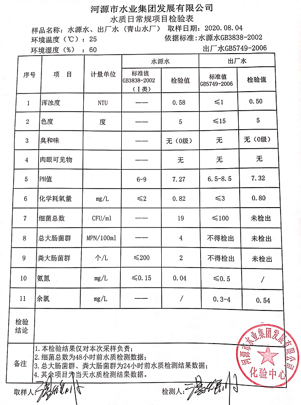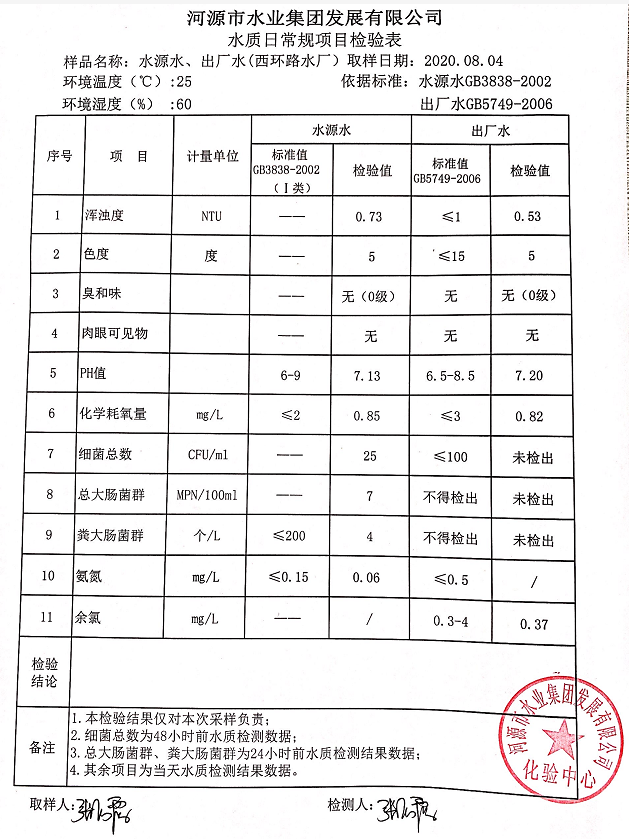 2020年8月4日水質(zhì)檢驗(yàn)報(bào)告