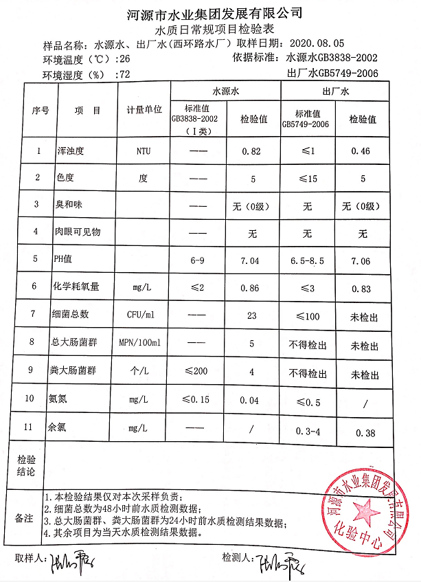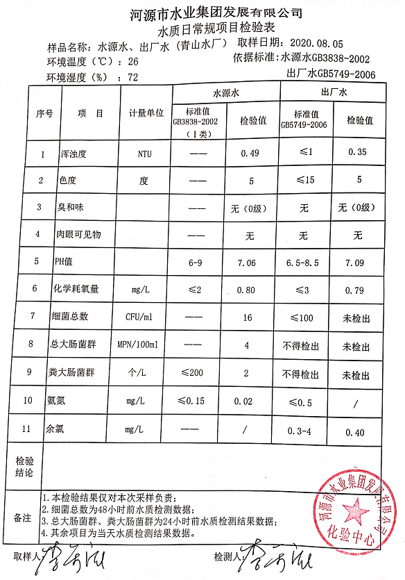 2020年8月5日水質(zhì)檢驗報告