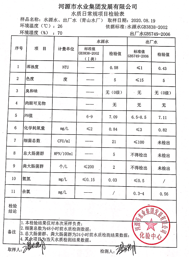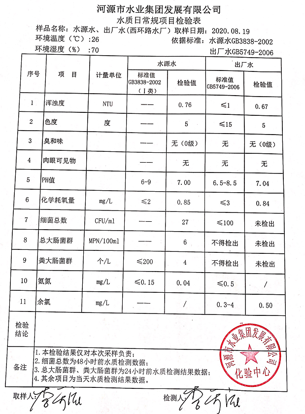 2020年8月19日水質檢驗報告