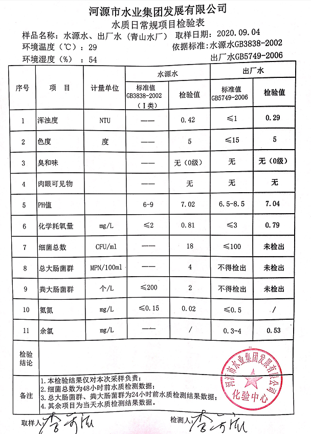 2020年9月4日水質(zhì)檢驗(yàn)報(bào)告