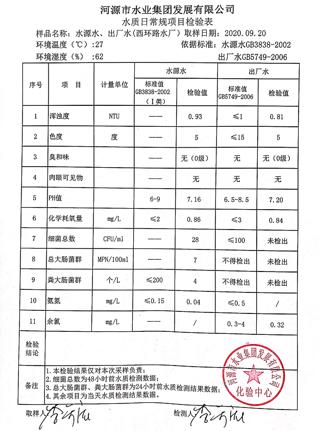 2020年9月20日水質(zhì)檢驗(yàn)報(bào)告