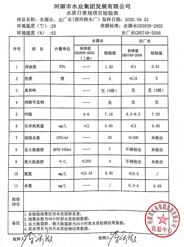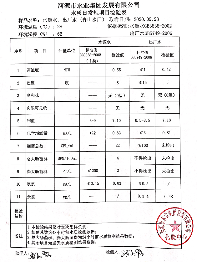 2020年9月23日水質(zhì)檢驗(yàn)報(bào)告