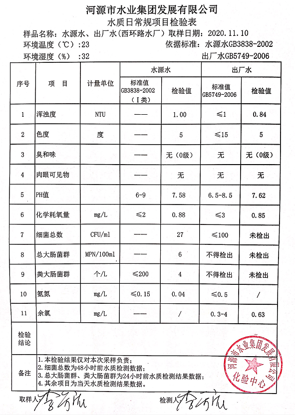 2020年11月10日水質(zhì)檢驗(yàn)報(bào)告