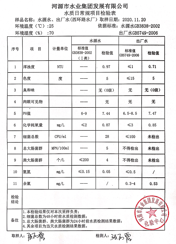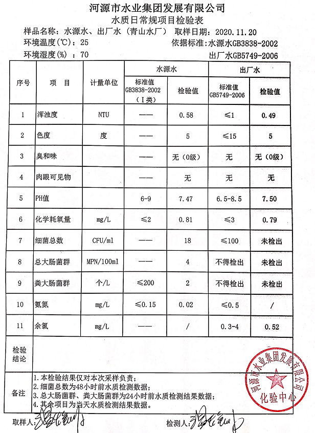 2020年11月20日水質(zhì)檢驗(yàn)報(bào)告