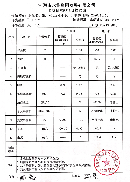 2020年11月28日水質(zhì)檢驗報告