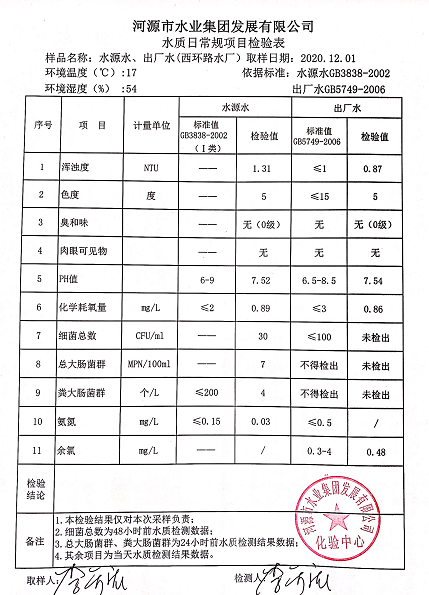 2020年12月1日水質(zhì)檢驗(yàn)報(bào)告