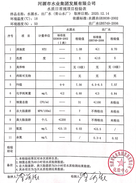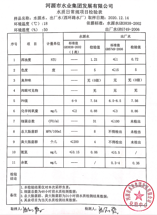 2020年12月14日水質(zhì)檢驗(yàn)報(bào)告