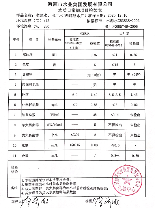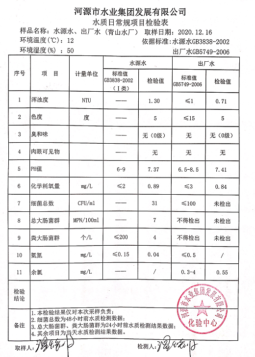 2020年12月16日水質(zhì)檢驗(yàn)報(bào)告