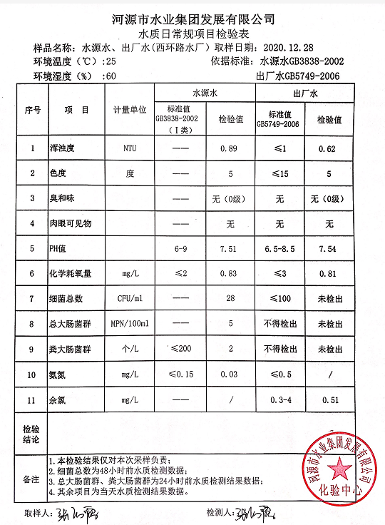 2020年12月28日水質(zhì)檢驗(yàn)報(bào)告