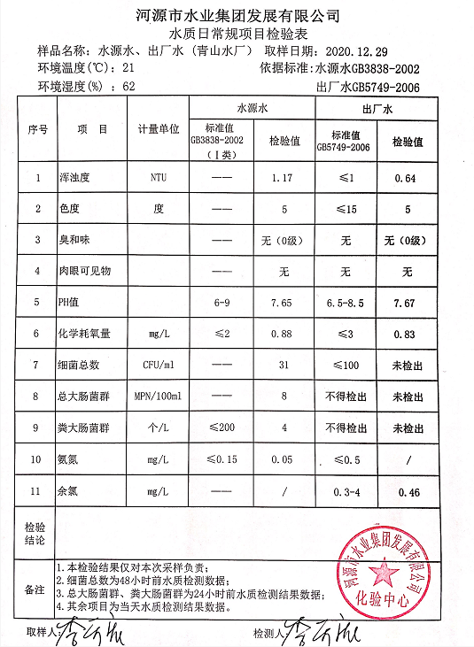 2020年12月29日水質(zhì)檢驗報告