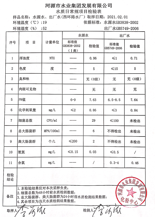 2021年2月1日水質檢驗報告