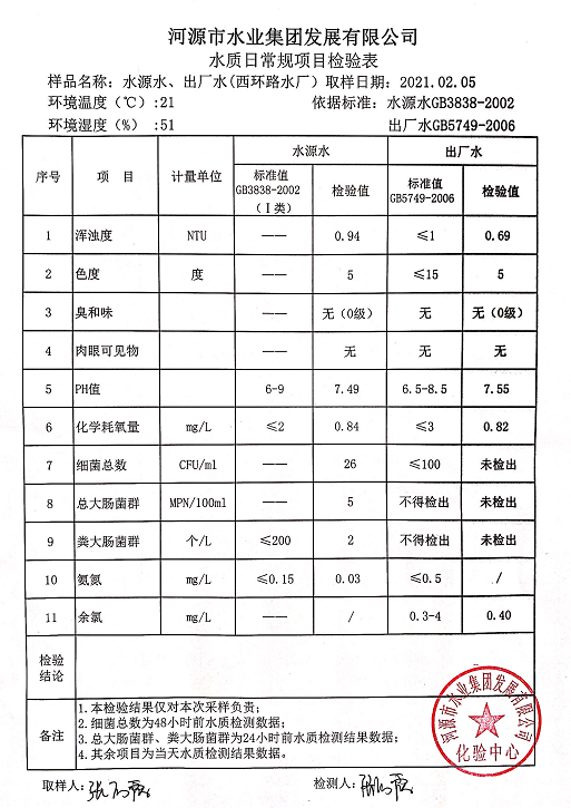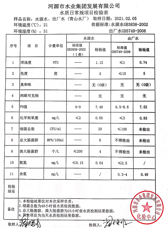 2021年2月5日水質(zhì)檢驗(yàn)報(bào)告