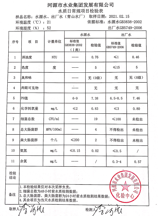 2021年2月15日水質(zhì)檢驗(yàn)報(bào)告