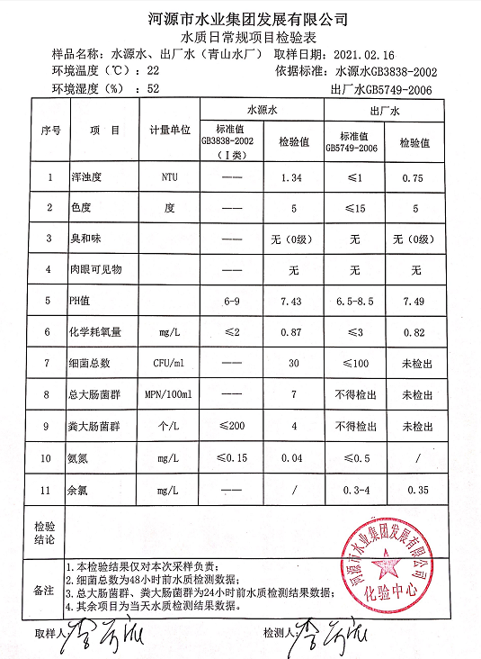 2021年2月16日水質(zhì)檢驗(yàn)報(bào)告