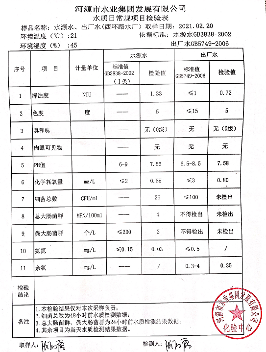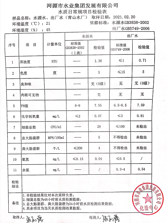 2021年2月20日水質(zhì)檢驗(yàn)報(bào)告