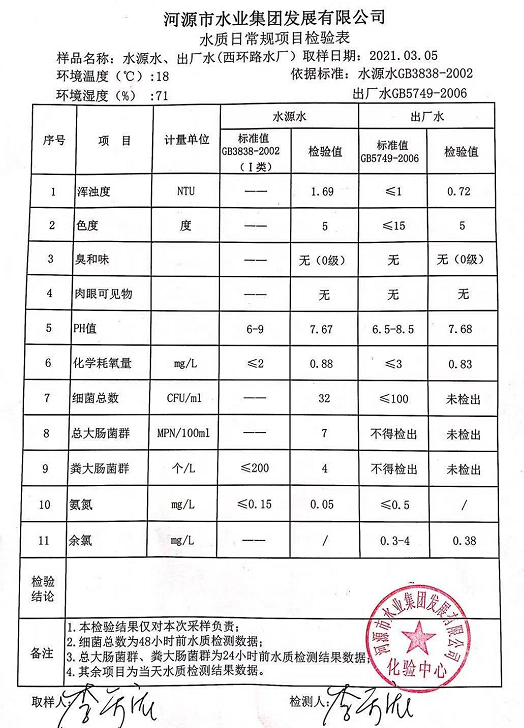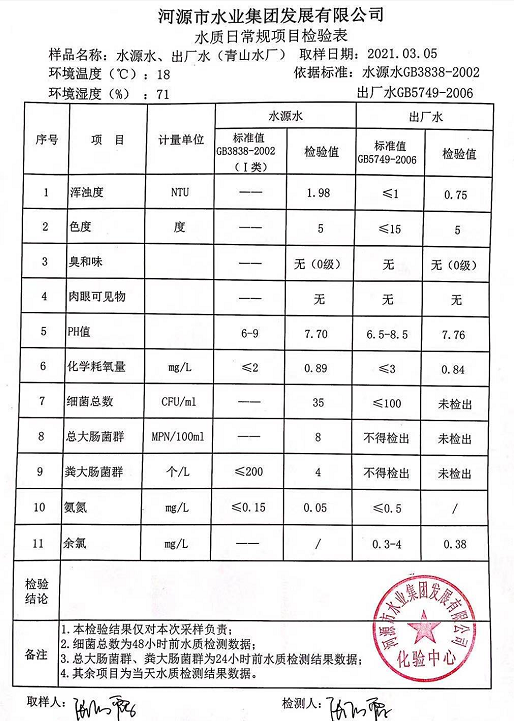 2021年3月5日水質(zhì)檢驗報告