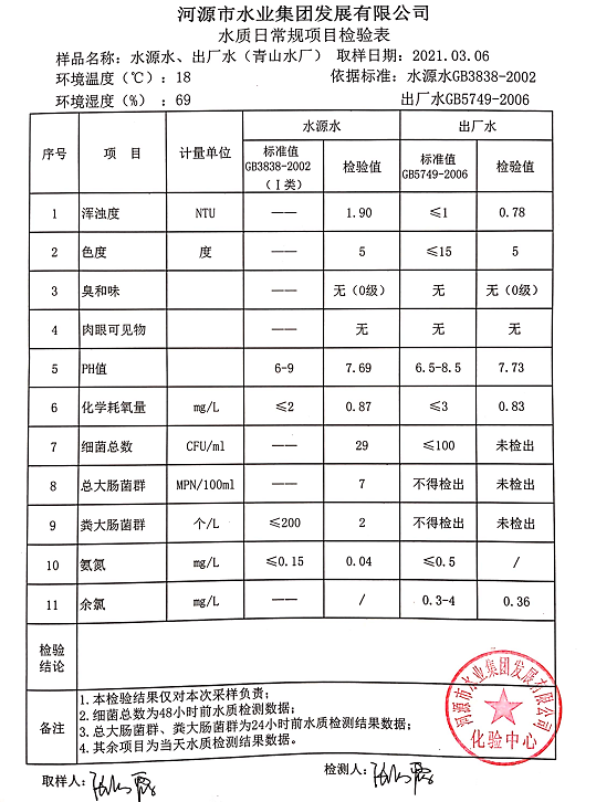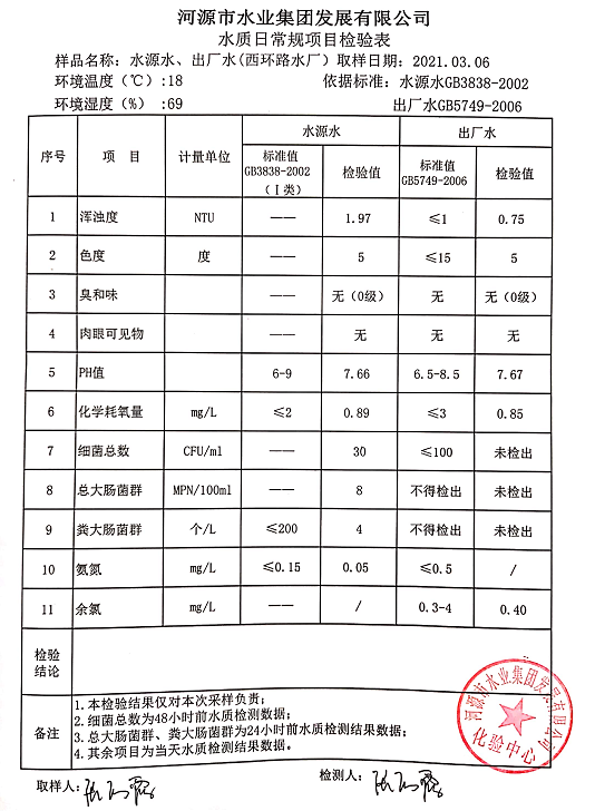 2021年3月6日水質(zhì)檢驗(yàn)報(bào)告