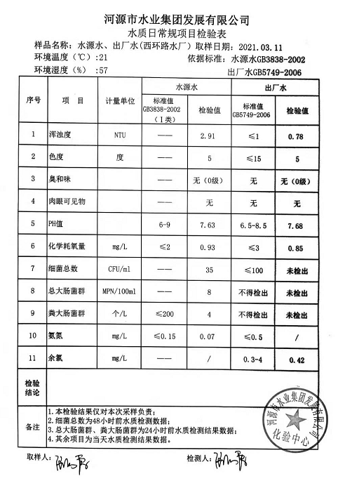 2021年3月11日水質(zhì)檢驗(yàn)報(bào)告