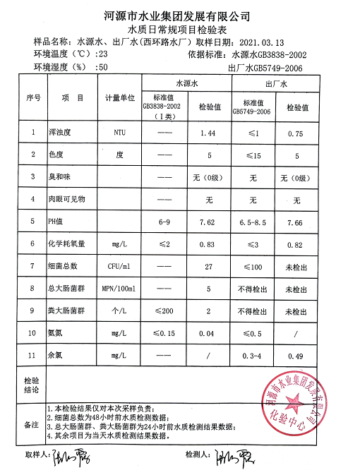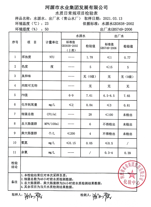 2021年3月13日水質(zhì)檢驗(yàn)報告
