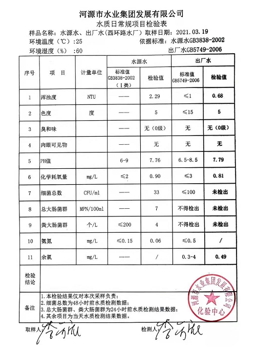 2021年3月19日水質(zhì)檢驗(yàn)報(bào)告