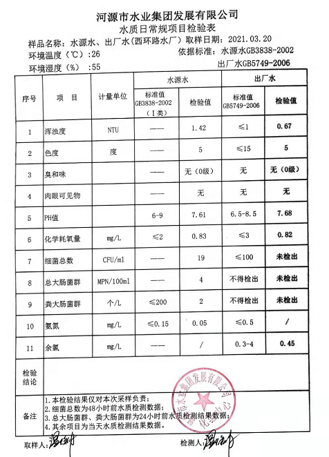 2021年3月20日水質(zhì)檢驗(yàn)報(bào)告