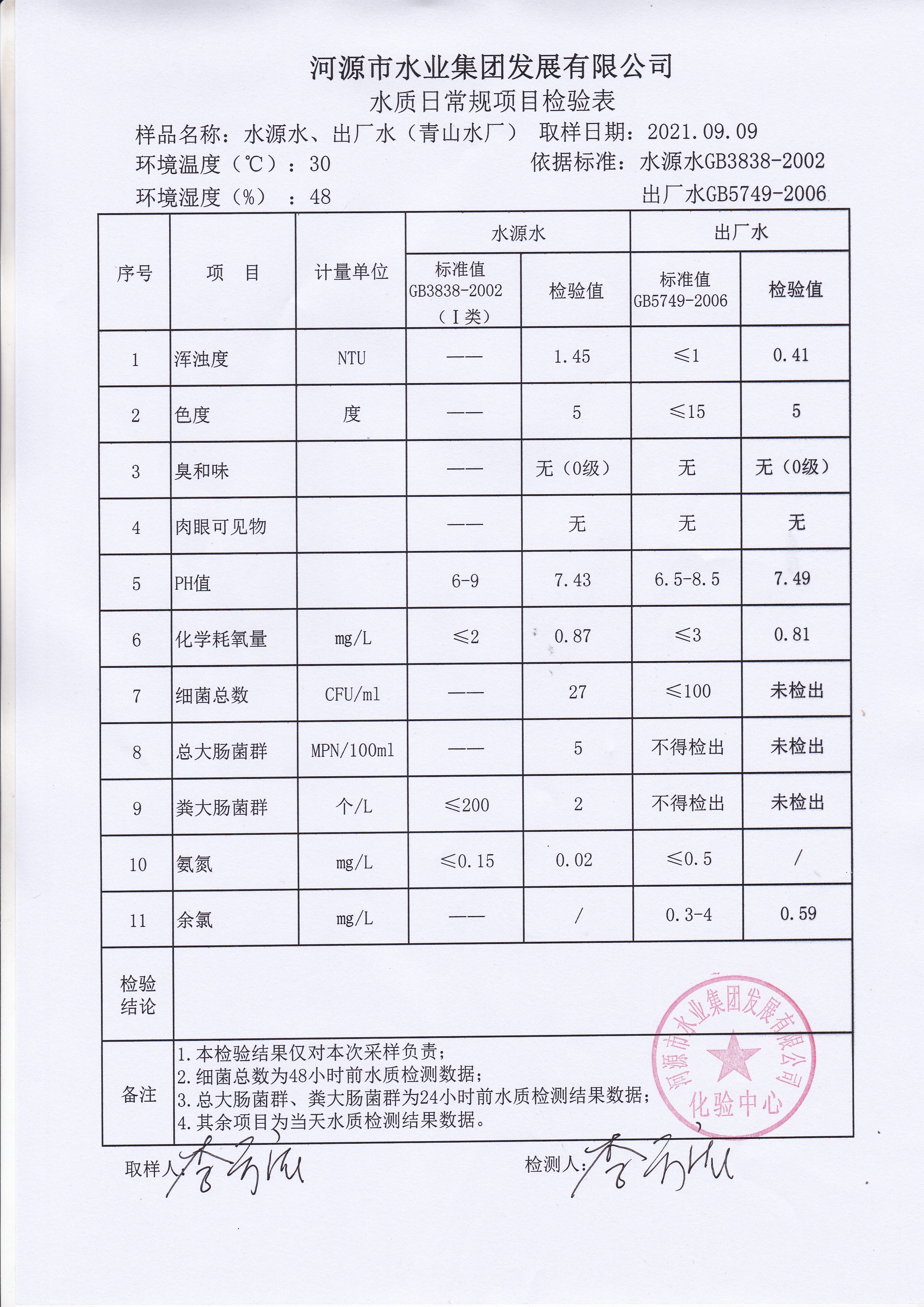 2021年9月9日水質(zhì)檢驗(yàn)報(bào)告 ??