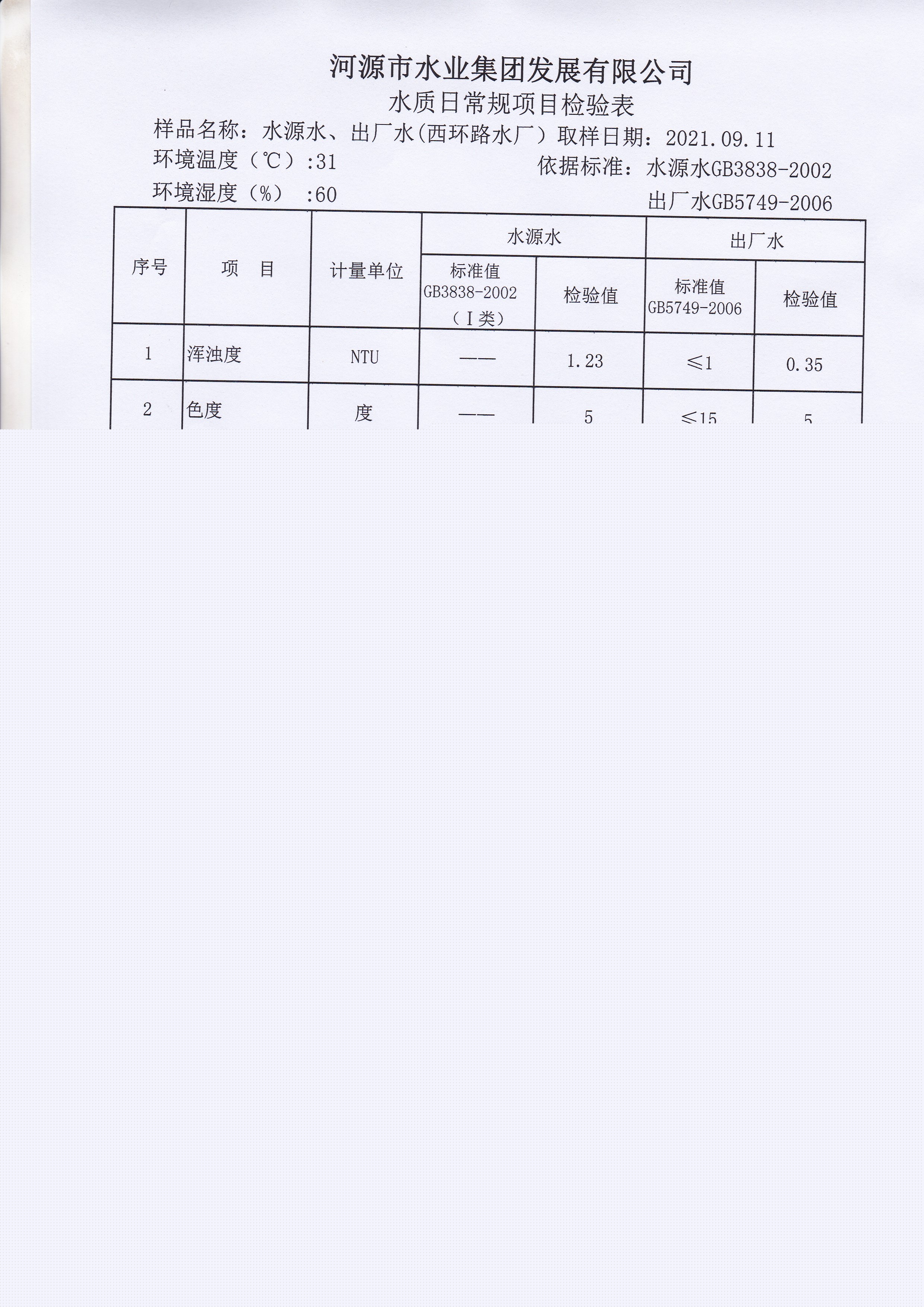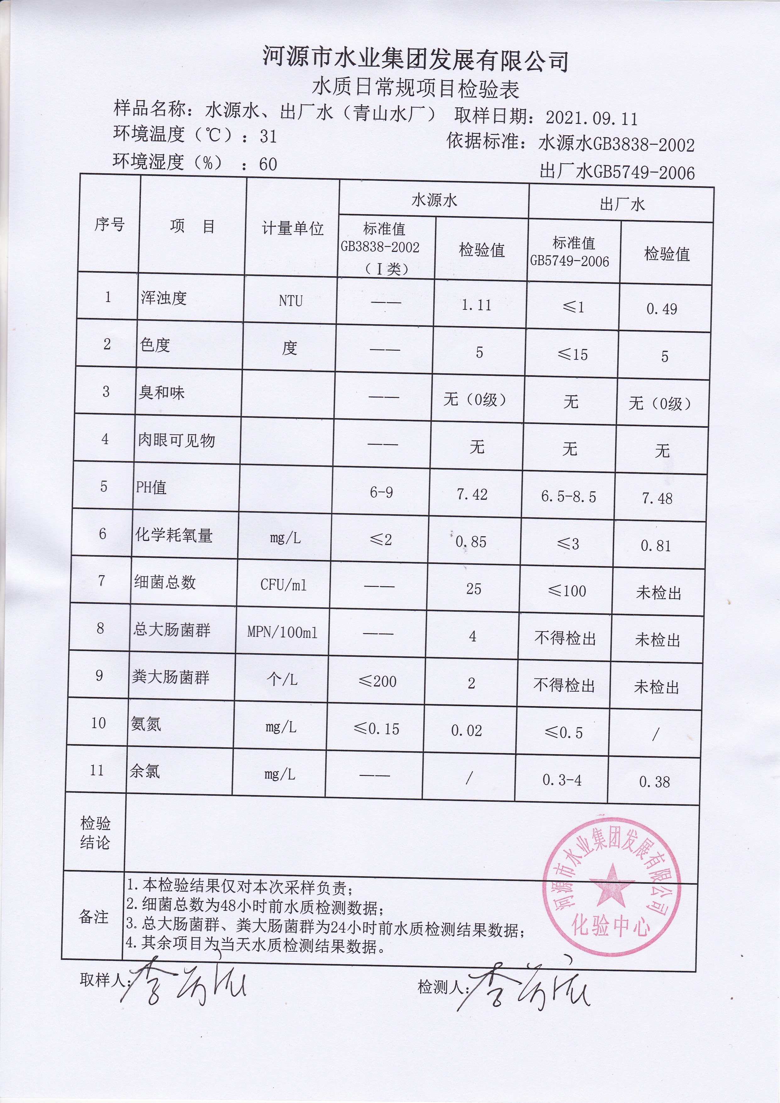 2021年9月11日水質(zhì)檢驗(yàn)報(bào)告 ??
