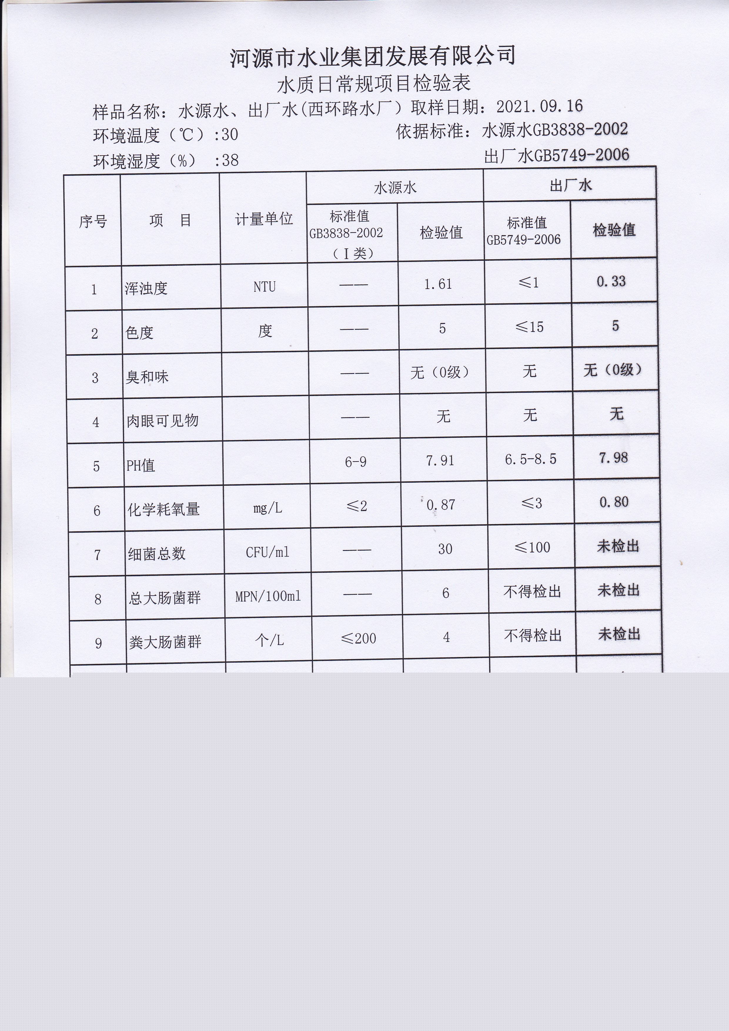 2021年9月16日水質(zhì)檢驗(yàn)報(bào)告 ??