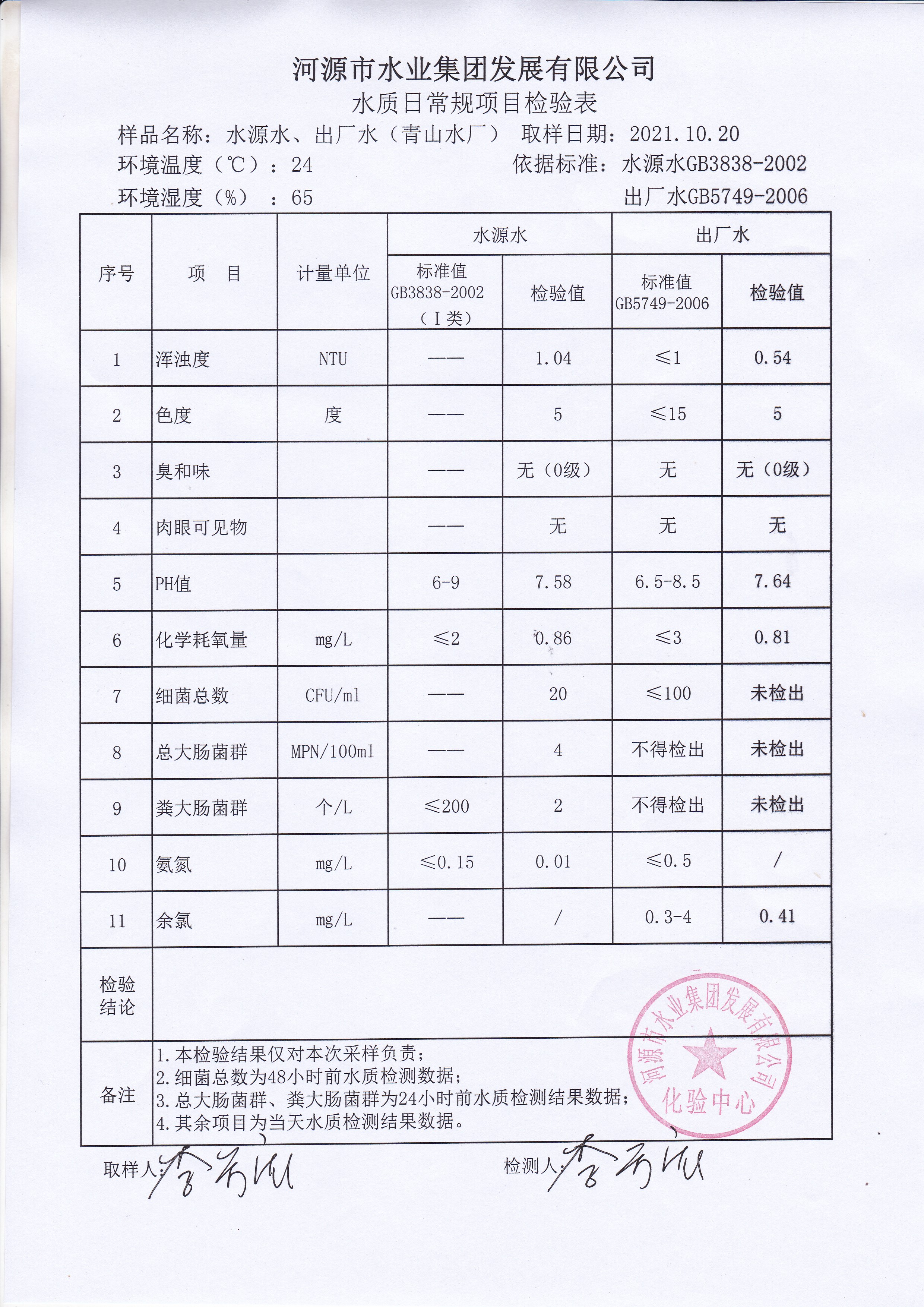 2021年10月20日水質(zhì)檢驗(yàn)報(bào)告