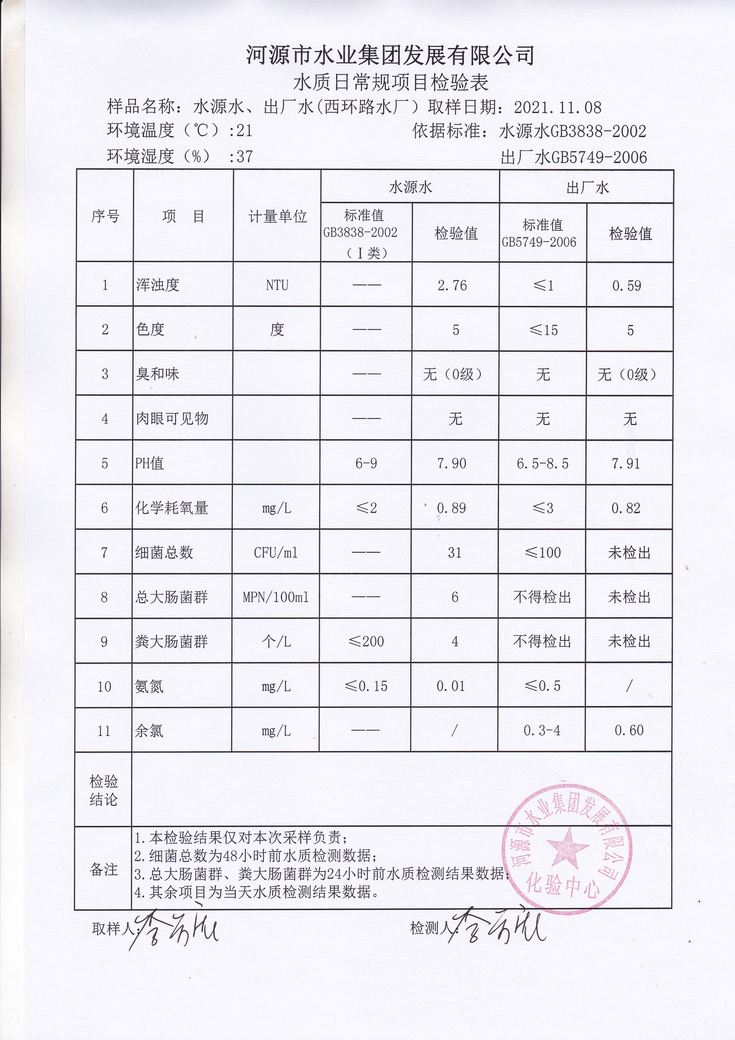 2021年11月8日水質(zhì)檢驗(yàn)報(bào)告