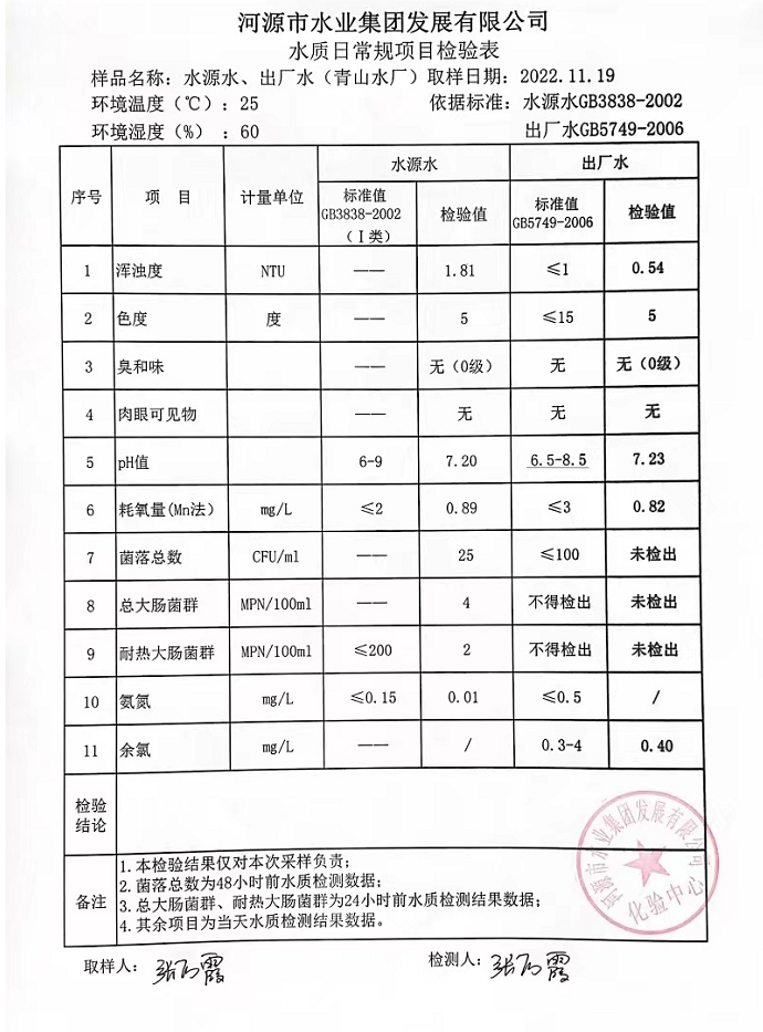 2022年11月19日水質(zhì)檢驗(yàn)報(bào)告