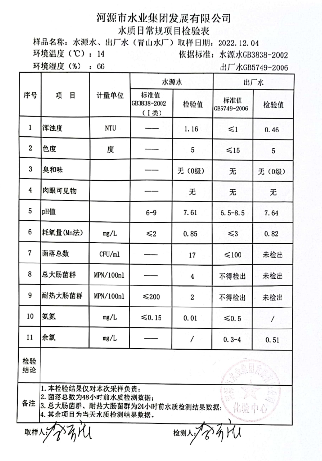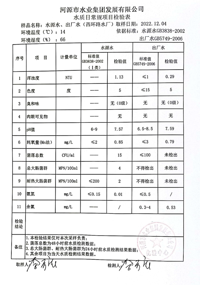 2022年12月4日水質(zhì)檢驗(yàn)報(bào)告