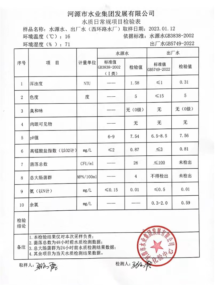 2023年1月12日水質檢驗報告