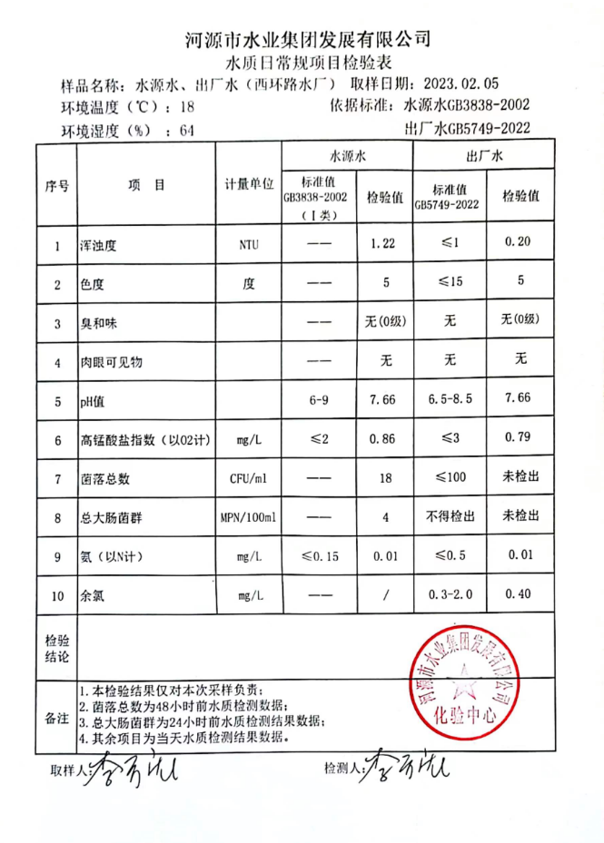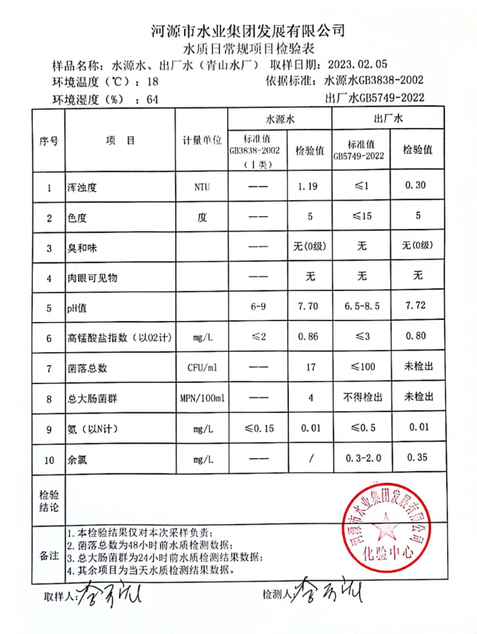 2023年2月5日水質(zhì)檢驗(yàn)報告