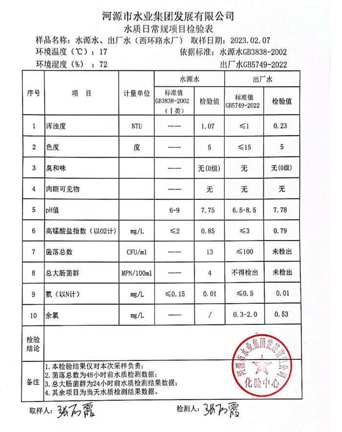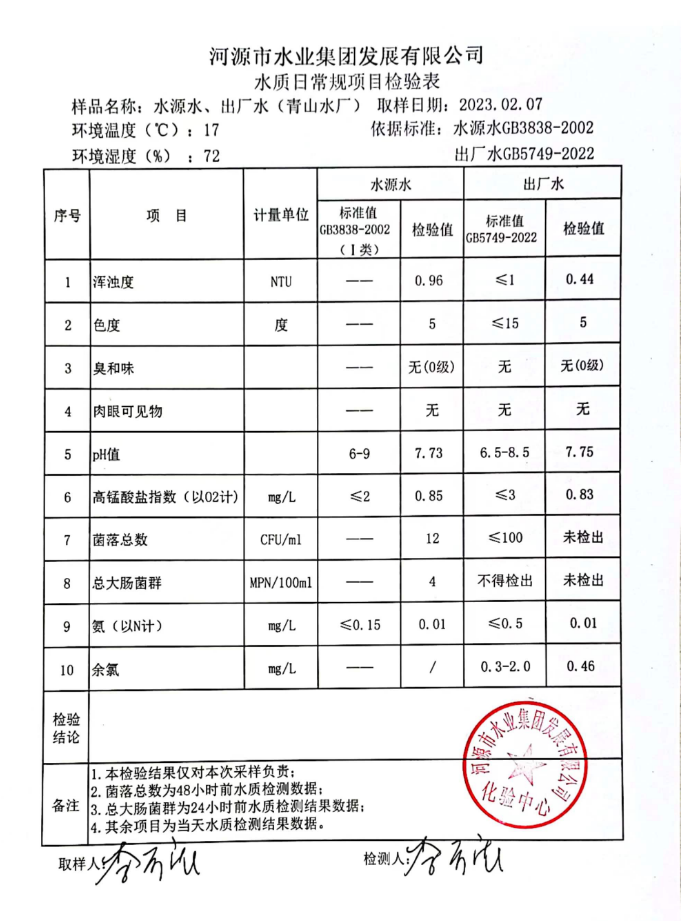 2023年2月7日水質(zhì)檢驗(yàn)報(bào)告