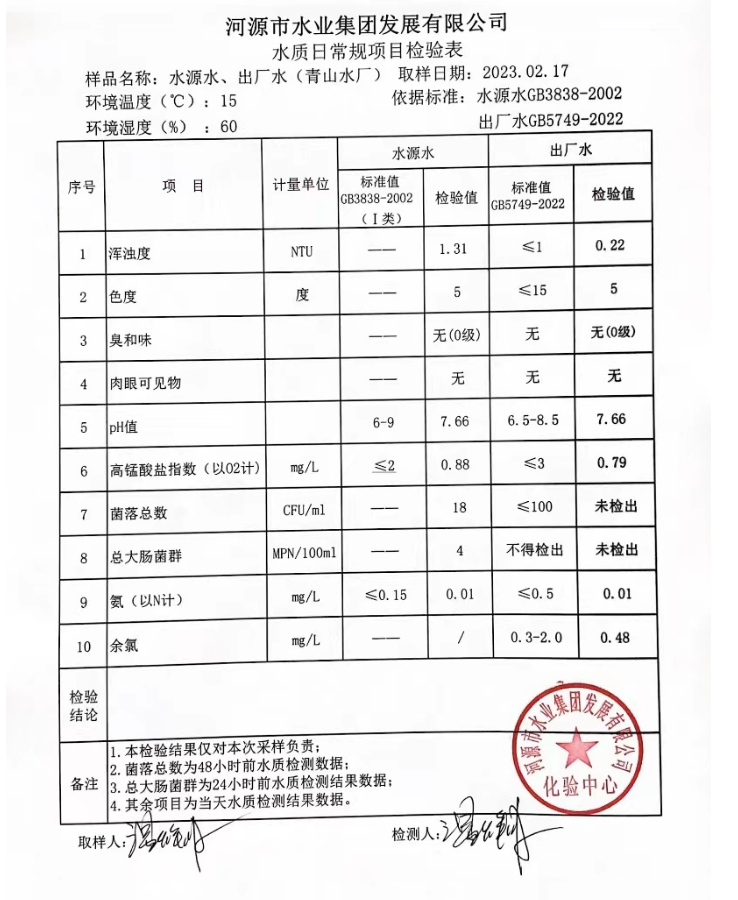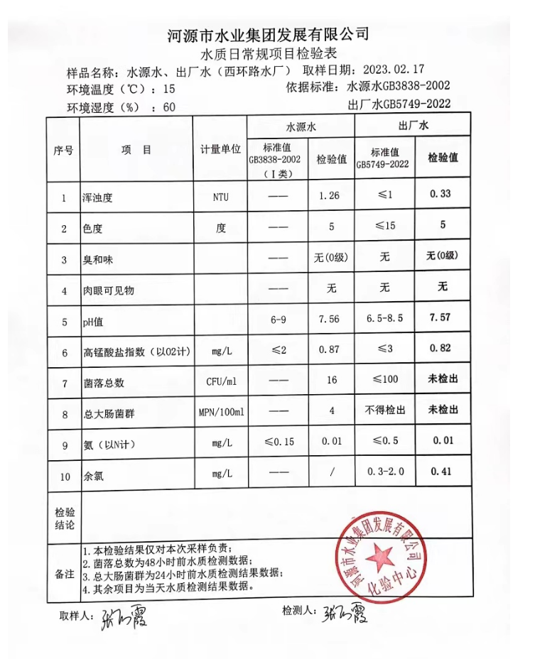 2023年2月17日水質(zhì)檢驗(yàn)報(bào)告