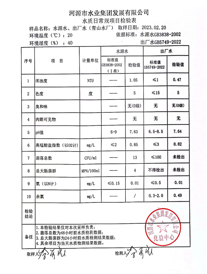 2023年2月20日水質(zhì)檢驗(yàn)報(bào)告