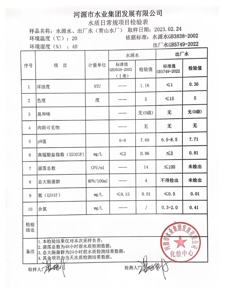 2023年2月24日水質(zhì)檢驗(yàn)報(bào)告