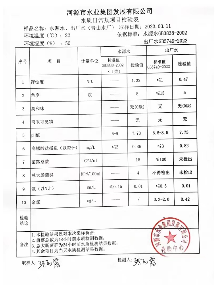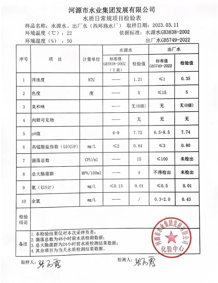 2023年3月11日水質(zhì)檢驗(yàn)報(bào)告