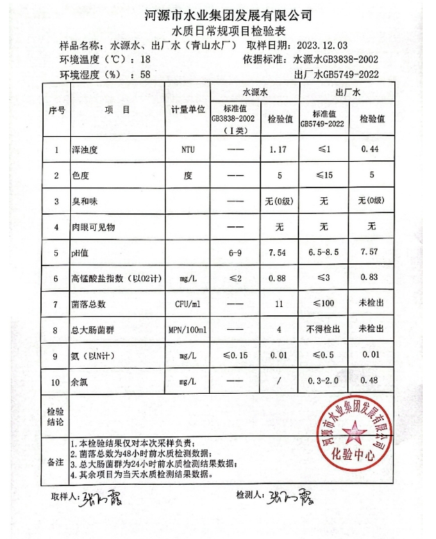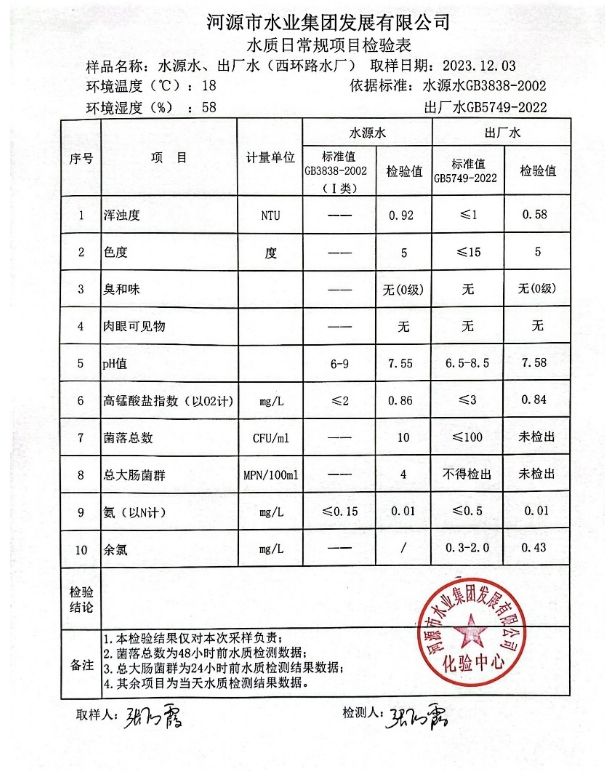 2023年12月3日水質(zhì)檢驗(yàn)報(bào)告 ???