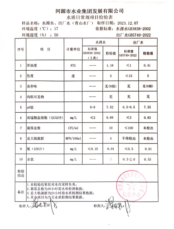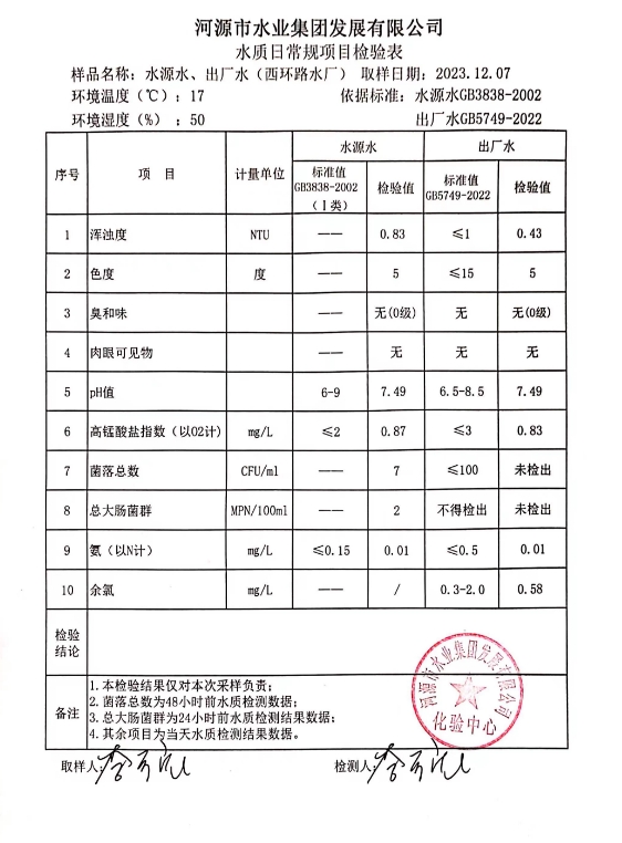 2023年12月7日水質(zhì)檢驗(yàn)報告 ???