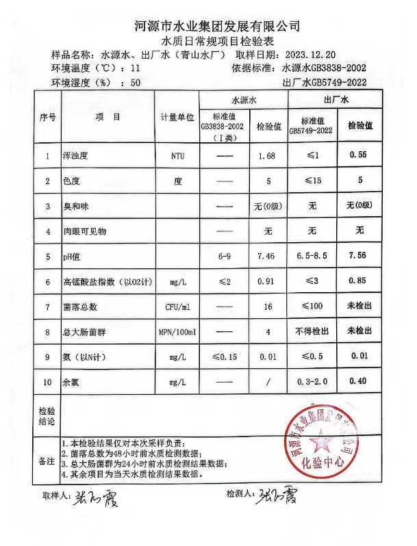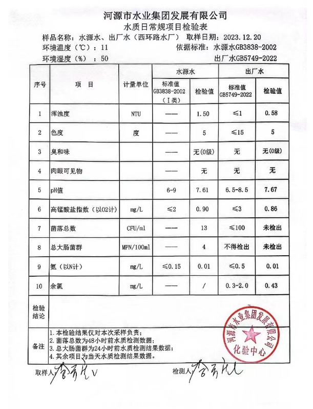 2023年12月20日水質(zhì)檢驗(yàn)報(bào)告 ???