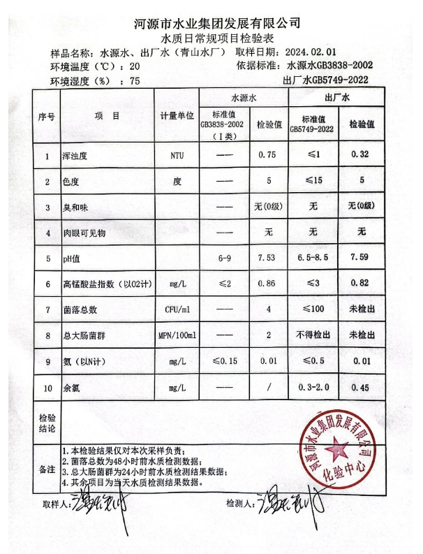 2024年2月1日水質(zhì)檢驗(yàn)報(bào)告 ???