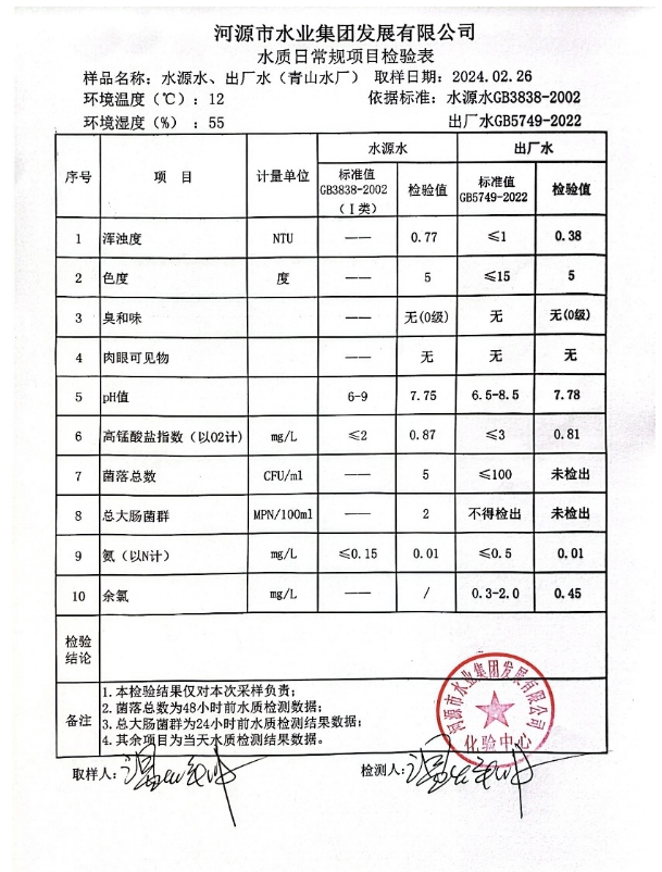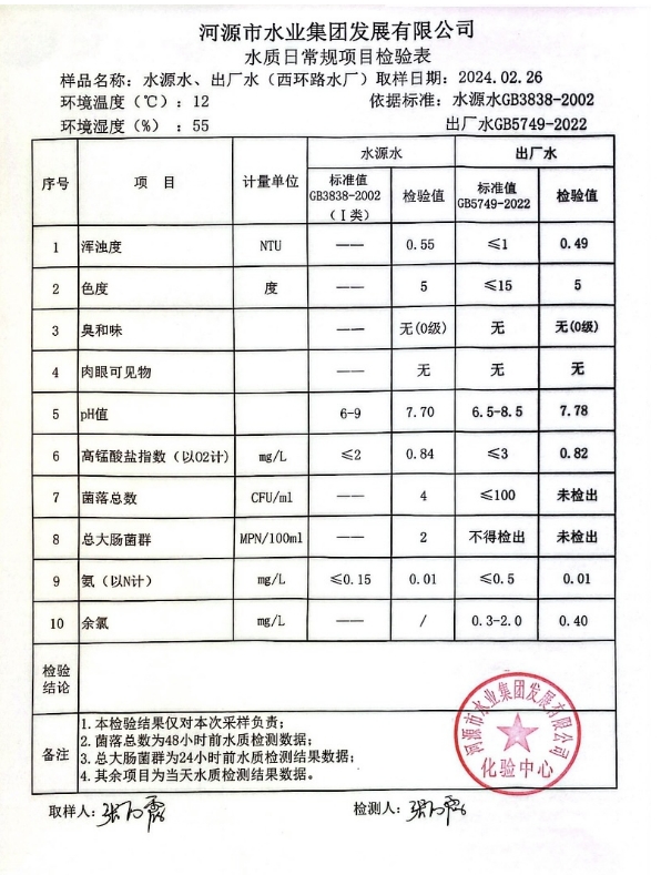 2024年2月26日水質(zhì)檢驗(yàn)報(bào)告 ???