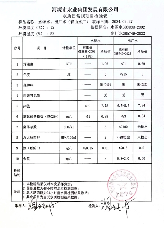 2024年2月27日水質(zhì)檢驗(yàn)報(bào)告 ???