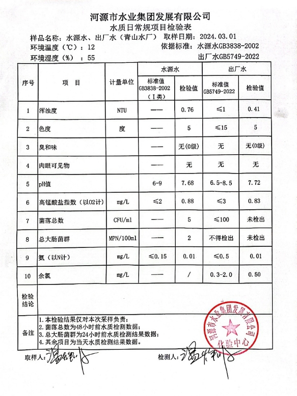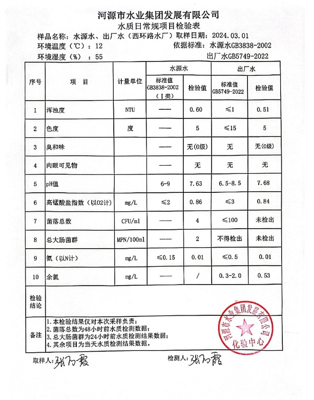 2024年3月1日水質(zhì)檢驗報告 ???