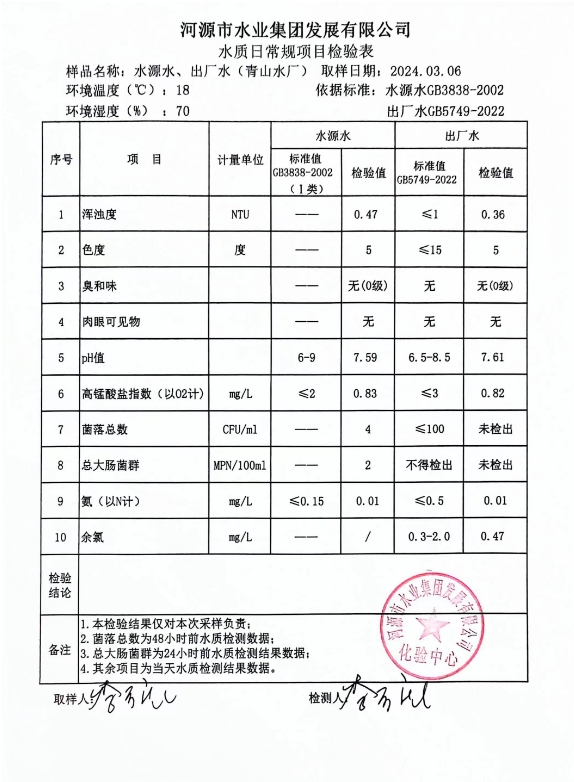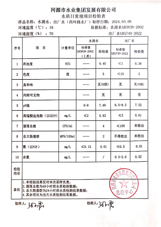 2024年3月6日水質(zhì)檢驗(yàn)報告 ???