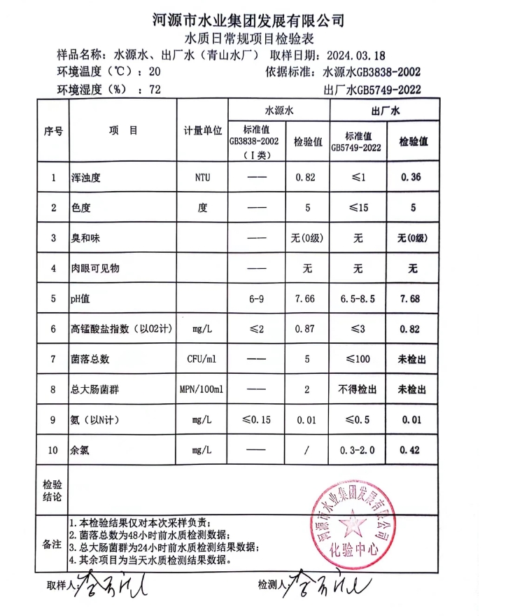 2024年3月18日水質(zhì)檢驗(yàn)報(bào)告
